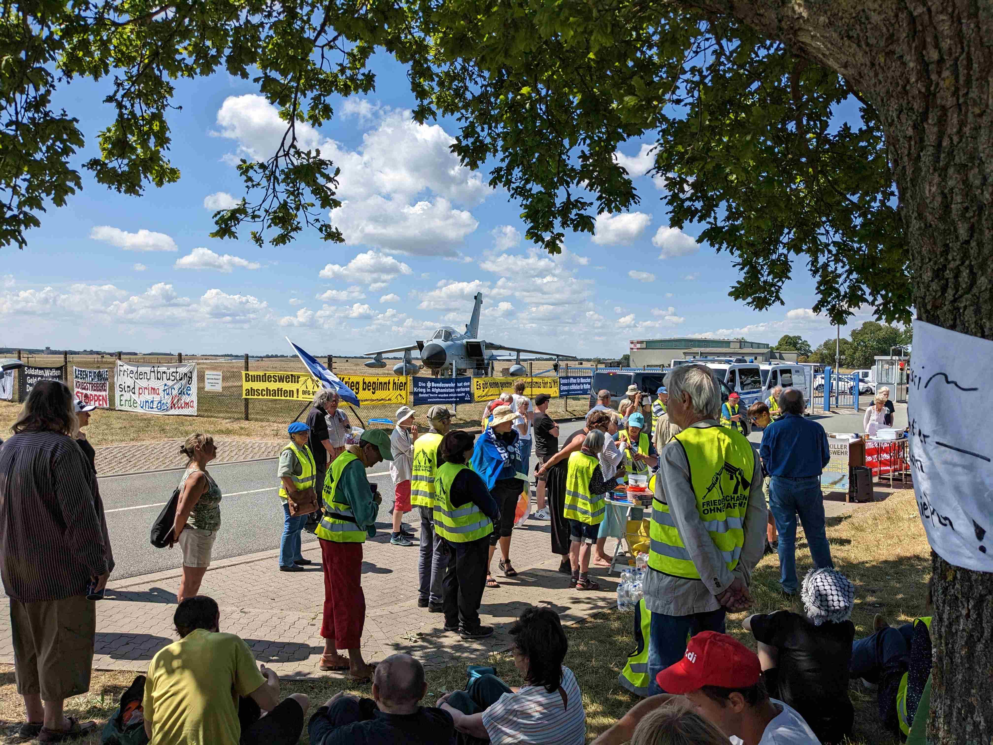 Mahnwache vor Fliegerhorst Jagel wg. Air Defender 23 am 14.06.2023